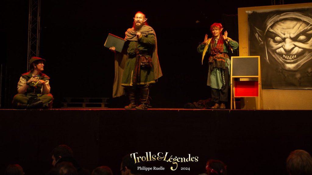 L’illustre narrateur, Eïr, a bien compris que les contes sont truffés de vieux clichés qu’il vaut envoyer valdinguer, mais il n’en est pas moins modeste. Eïr à décidé de remettre tout le monde à jour, armé d’une craie, il écrit sur son tableau noir : “qu’est-ce que le conte ?” Tout semble débuter comme un cours à l’école des narrateurs, mais Eöl ne va pas laisser cette leçon se dérouler comme un cours magistral. Il proposera de faire agir et interagir les enfants du public : tantôt en les faisant monter sur scène pour incarner des personnages, tantôt en votant pour décider de la suite de l’histoire ou en prêtant leurs voix aux personnages. Noah garde son rôle d’assistante et guide les enfants, aidée d’Eöl.